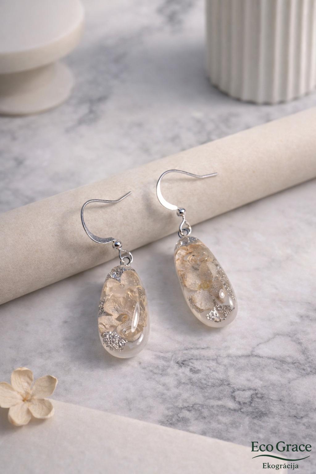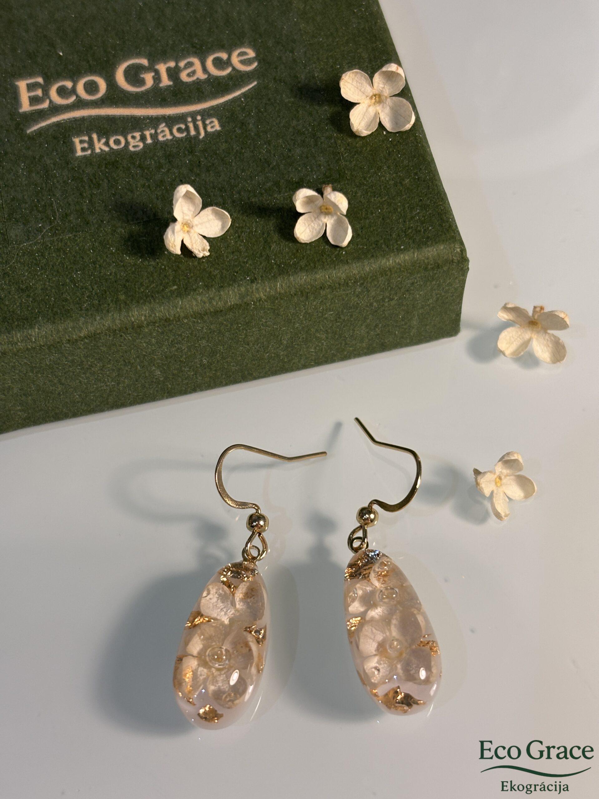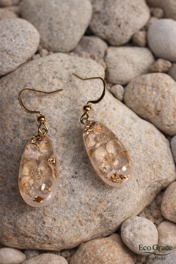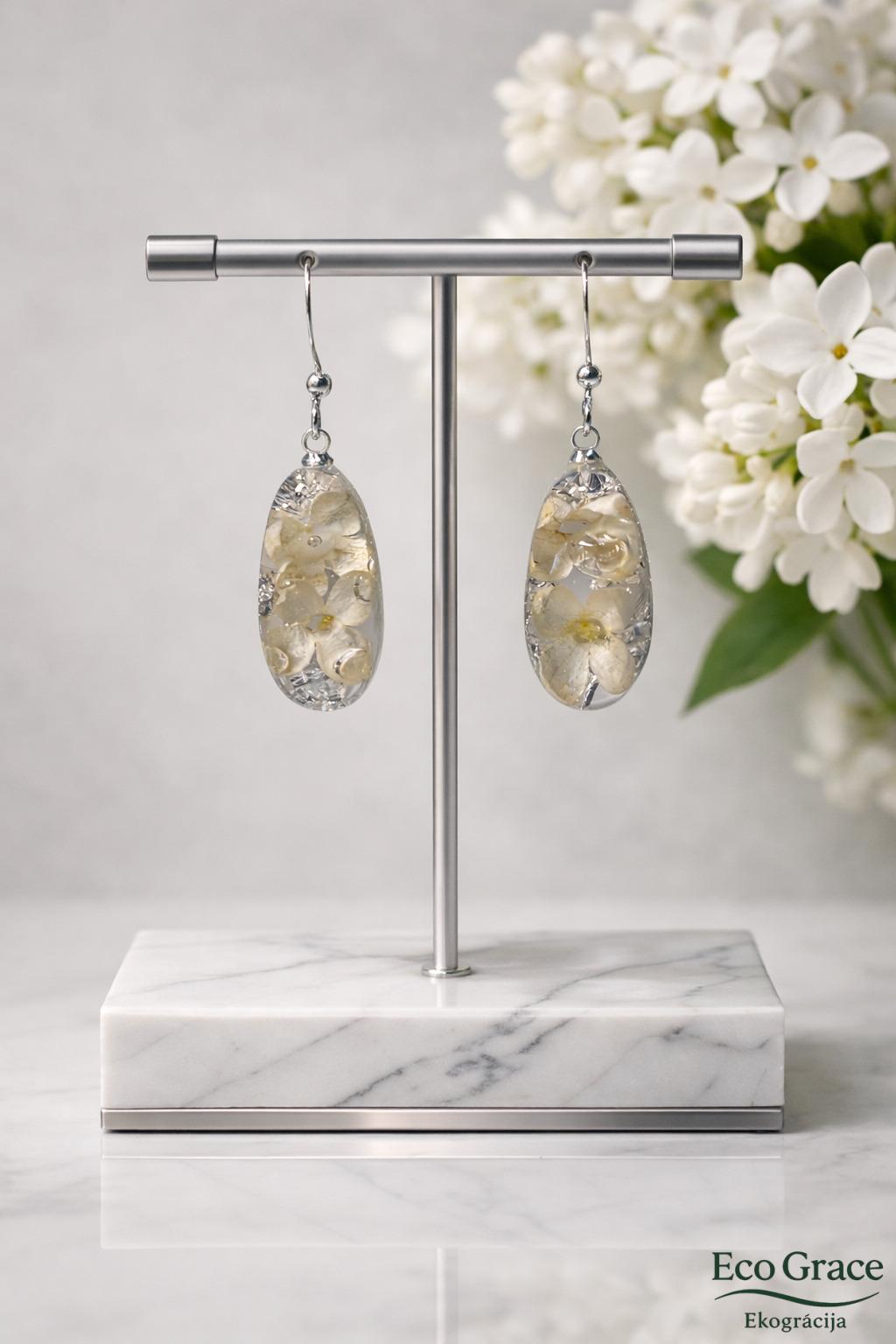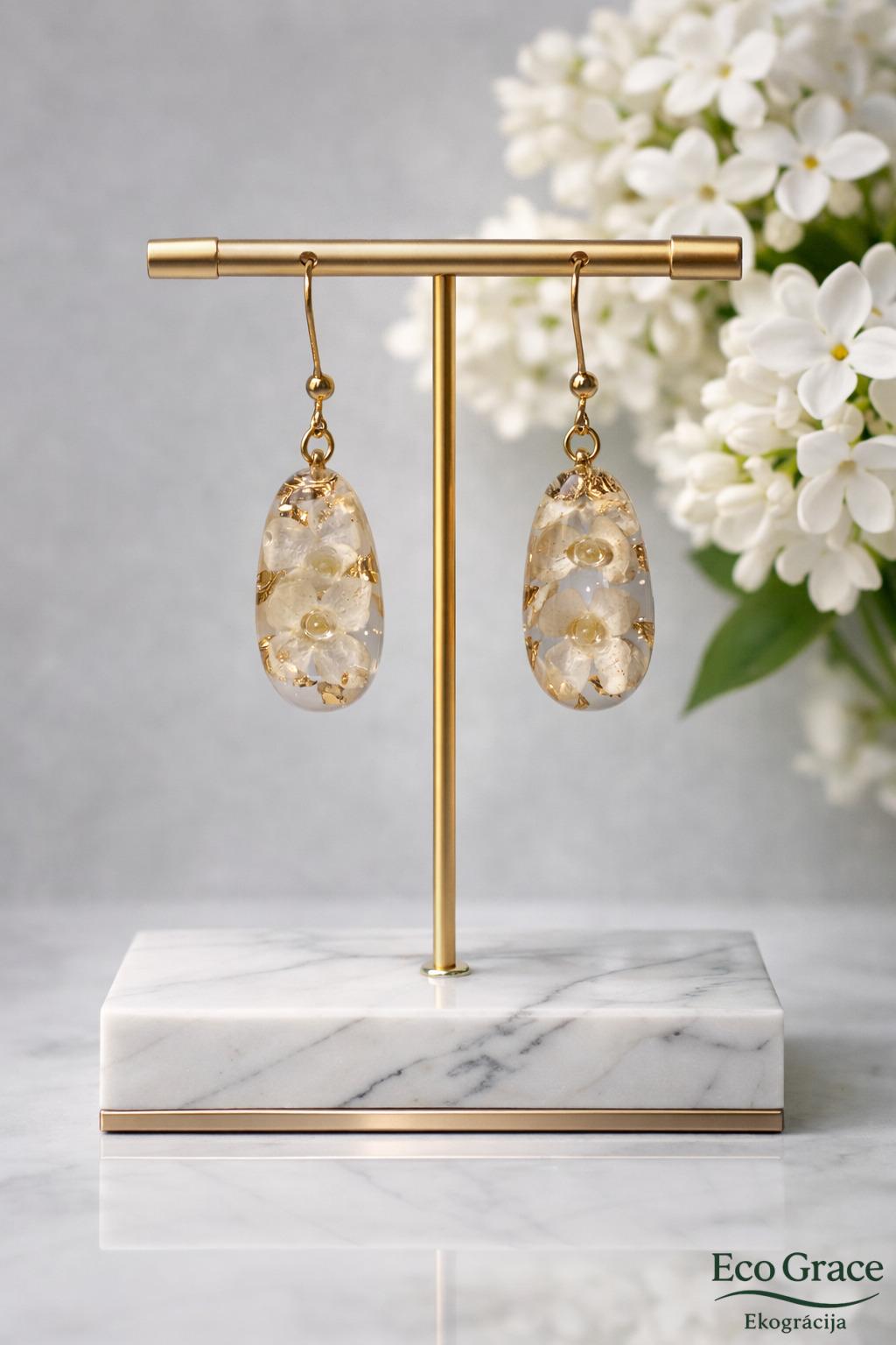 Roku darbs ar mīlestību un rūpību – epoksīda sveķos iestrādāti pašu vākti un kaltēti dabīgu ceriņu ziedi, kas mirdz zelta un sudraba akcentos. Katrs izstrādājums ir unikāls, jo dabā nav divu vienādu ziedu – tieši tāpat arī nav divu vienādu rotu.
