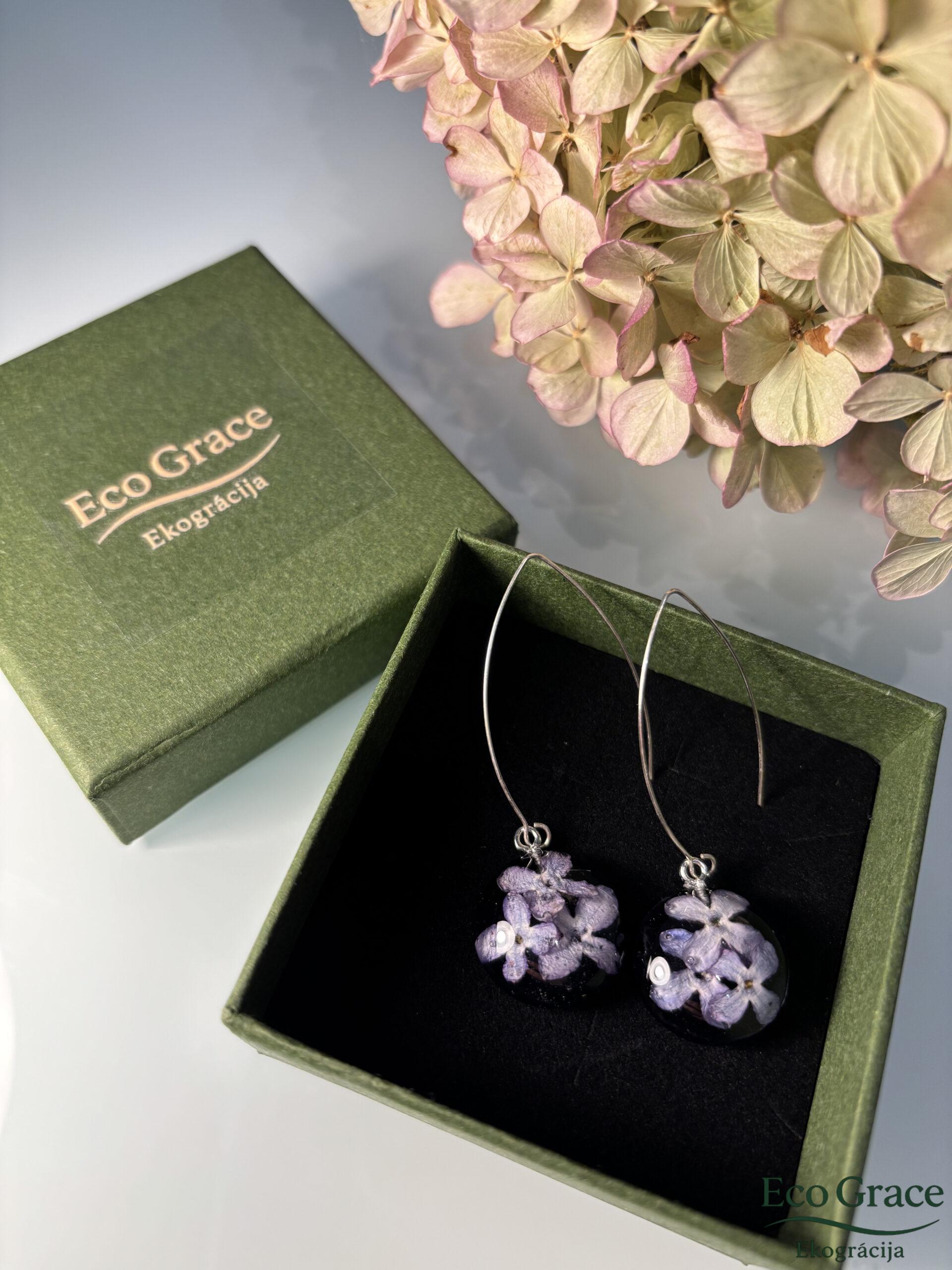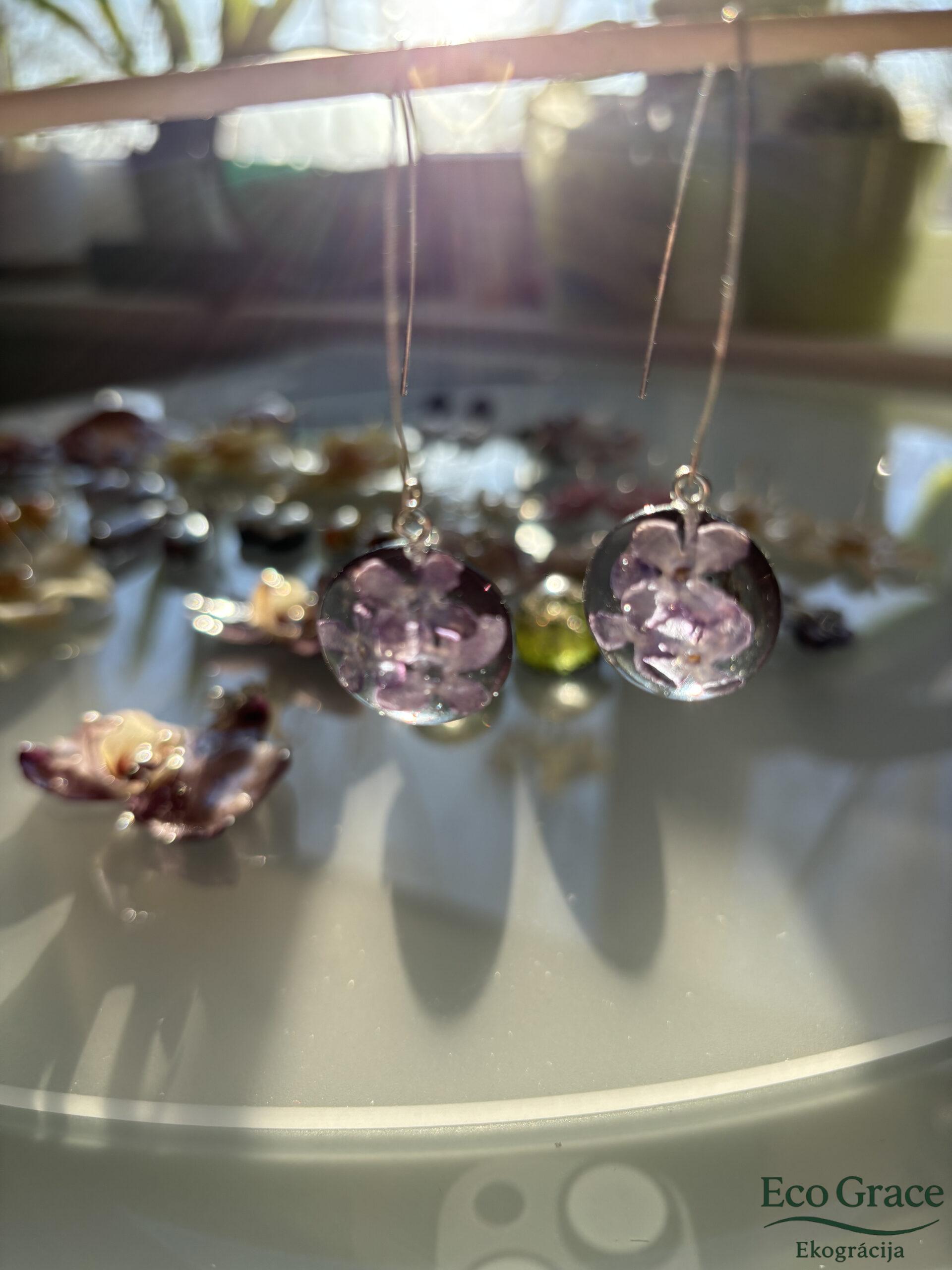 Dabīgi ceriņu ziediņi ievīti zilgani dūmakainā, dzidrā epoksīdā. Roku darbs!