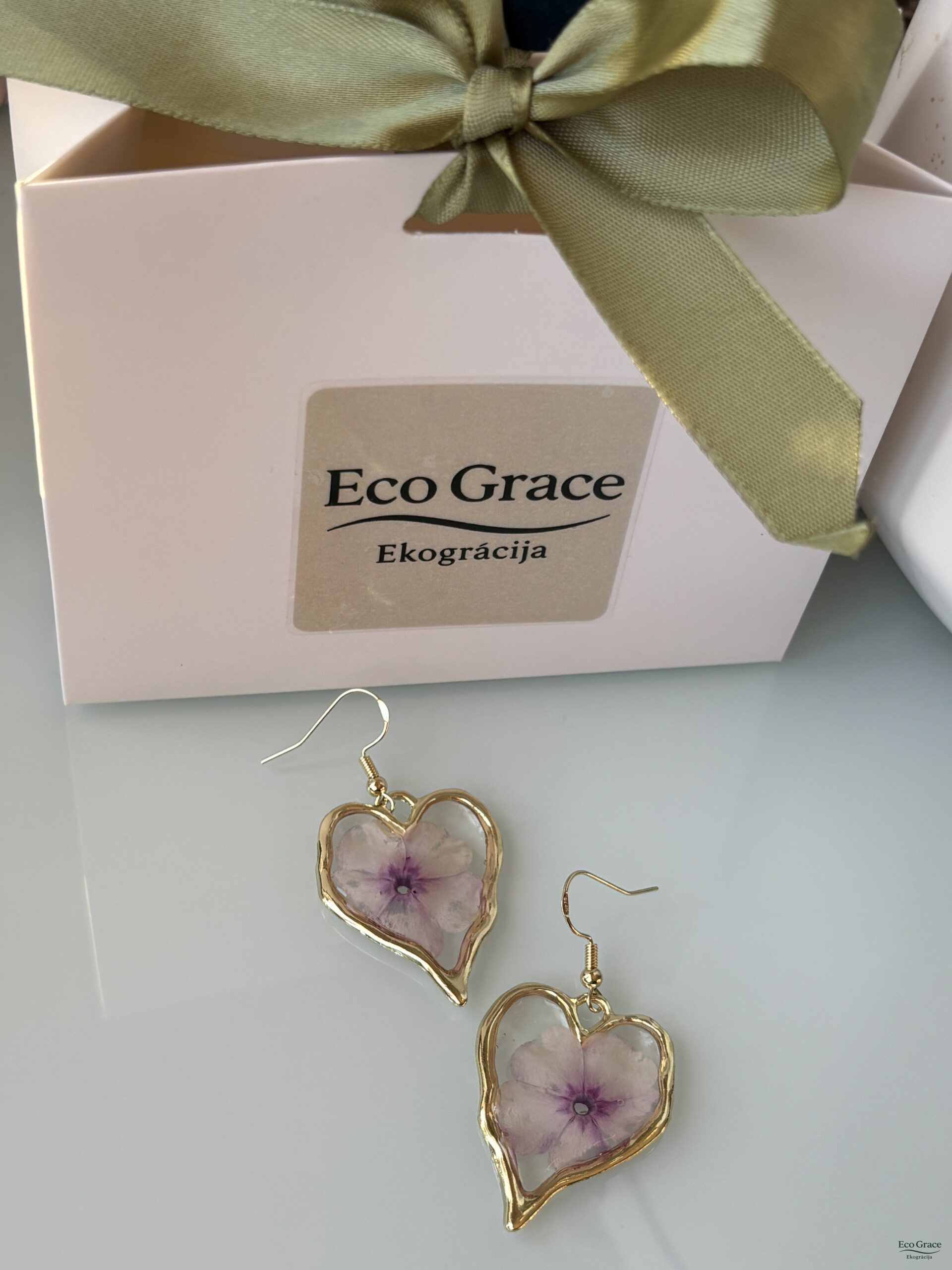 Flokšu auskari “Sirsniņa gaišā” – maigs pavasara pieskāriens, kas iemūžināts rotā. Sirsniņas formas rāmītī dzidrajā epoksīdā ieliets īsts, maigi rozā flokša zieds, saglabājot tā trauslo skaistumu un dabisko vieglumu.