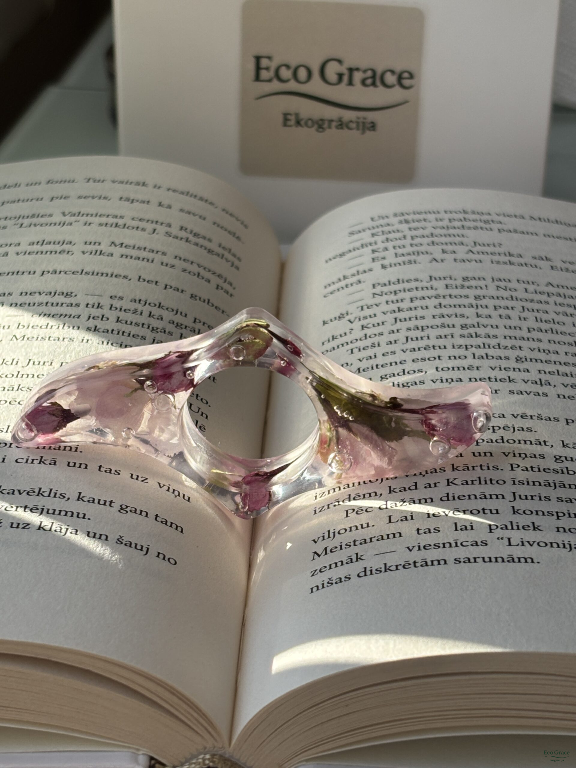 Grāmatu lapu turētājs “Vilnītis” — mazs, skaists palīgs mierīgiem lasīšanas brīžiem. Epoksīdā iemūžināti dabīgi ziedi, pašu vākti! Roku darbs!