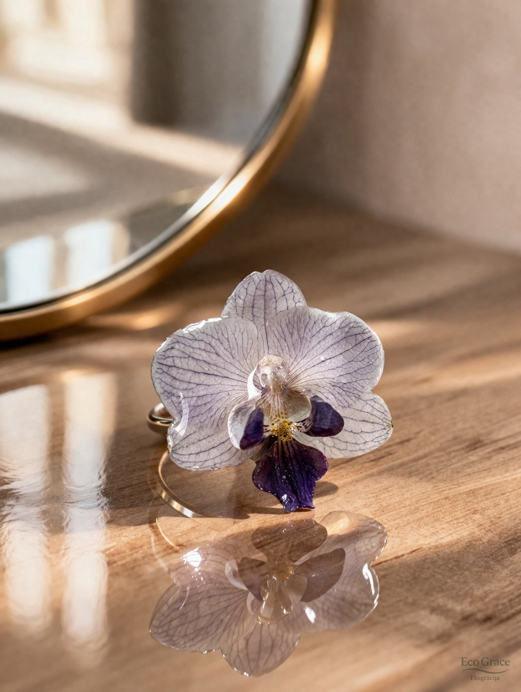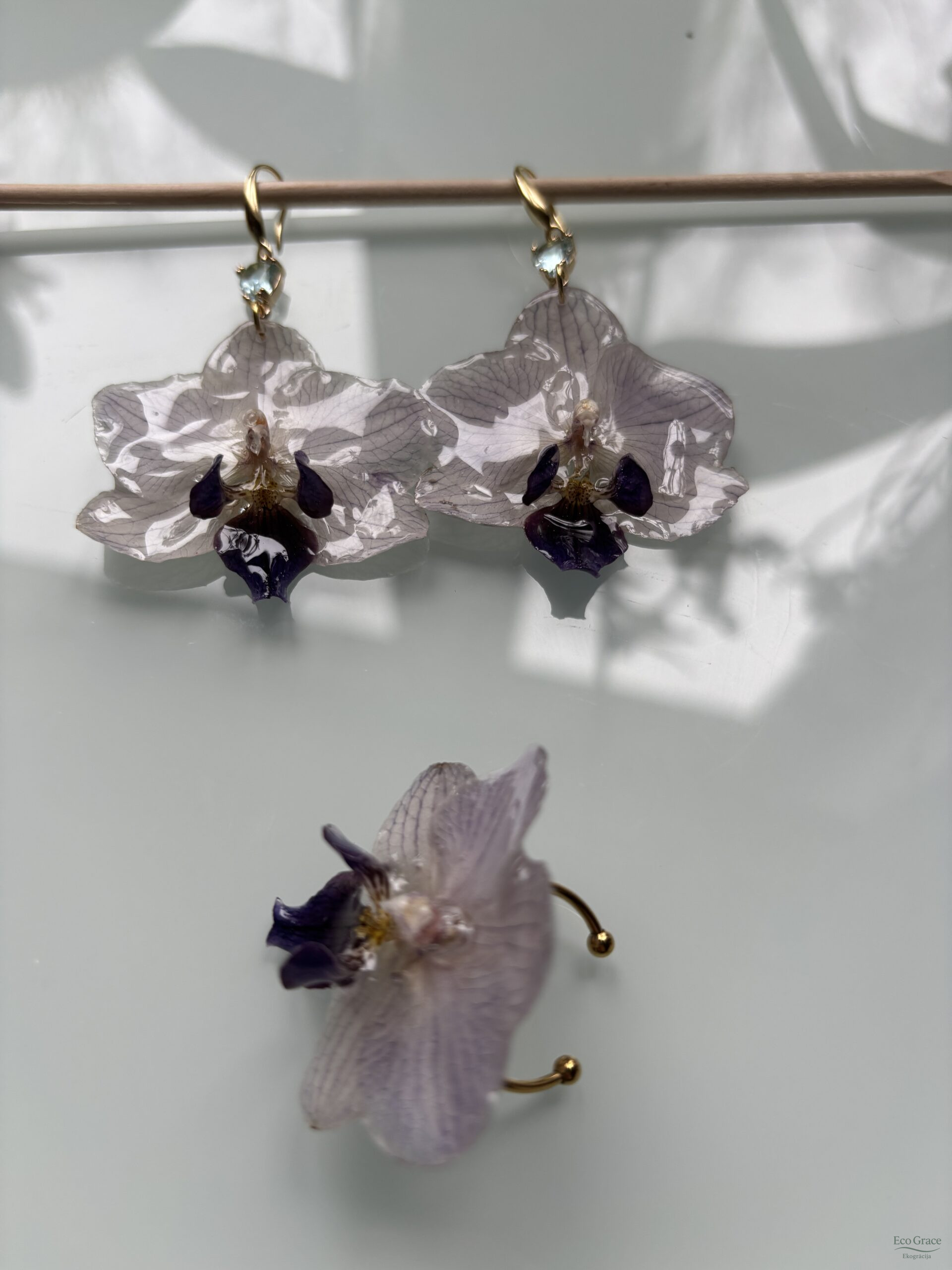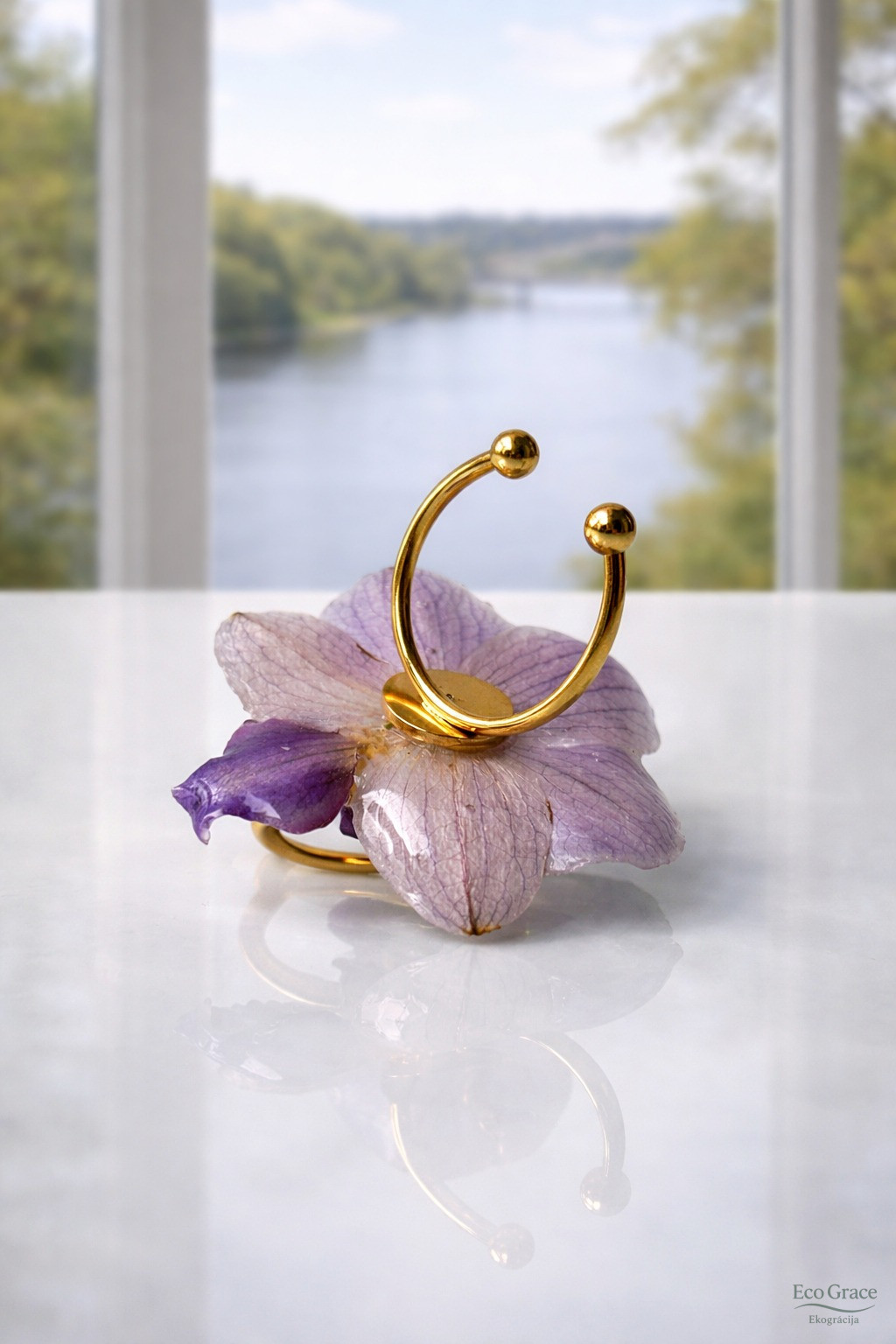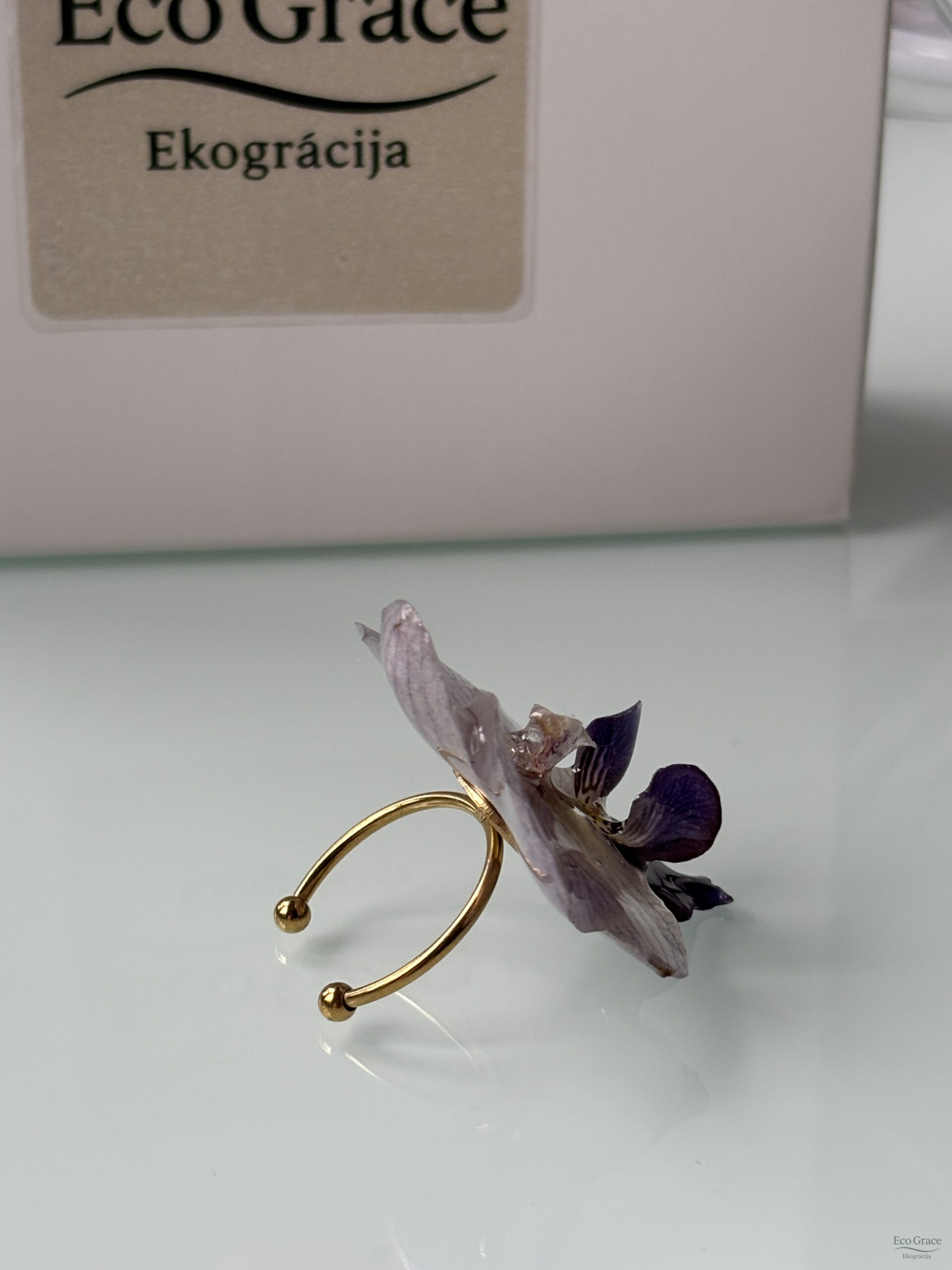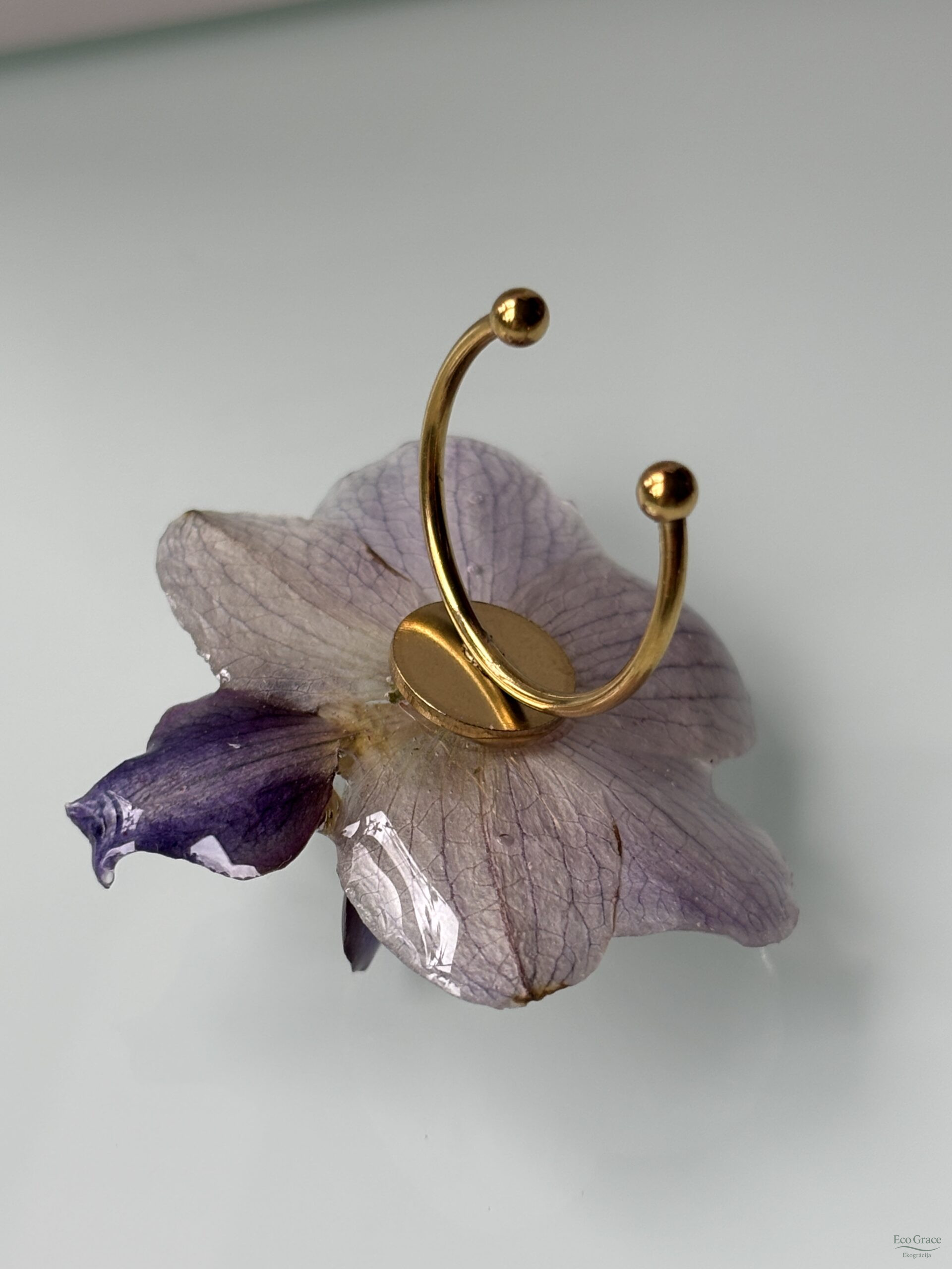 Gredzens “Orhideja – Zilā” – izsmalcināts un elegants, darināts no dabīga orhidejas zieda. Katrs eksemplārs iemūžina zieda dabisko skaistumu un smalkumu.