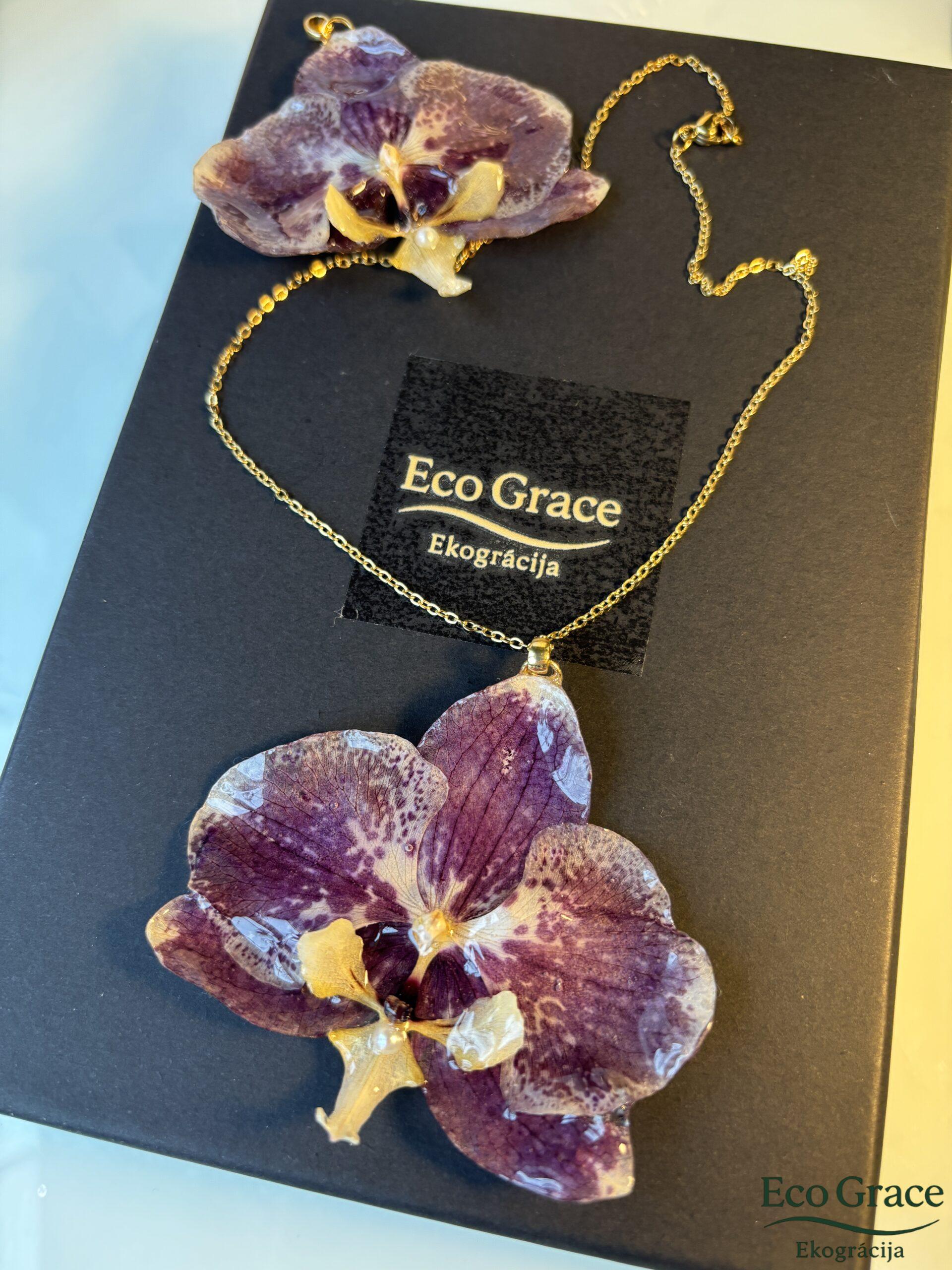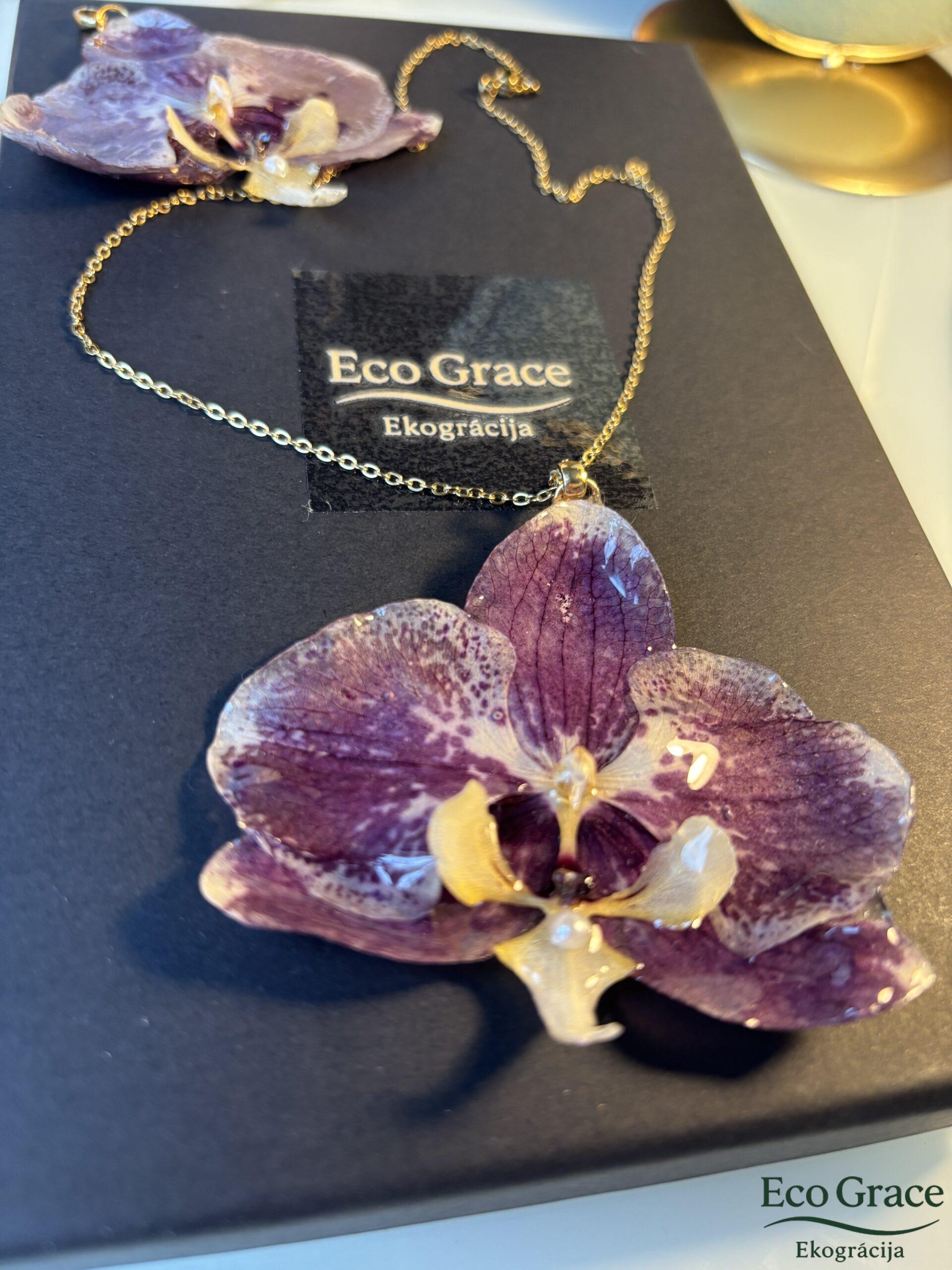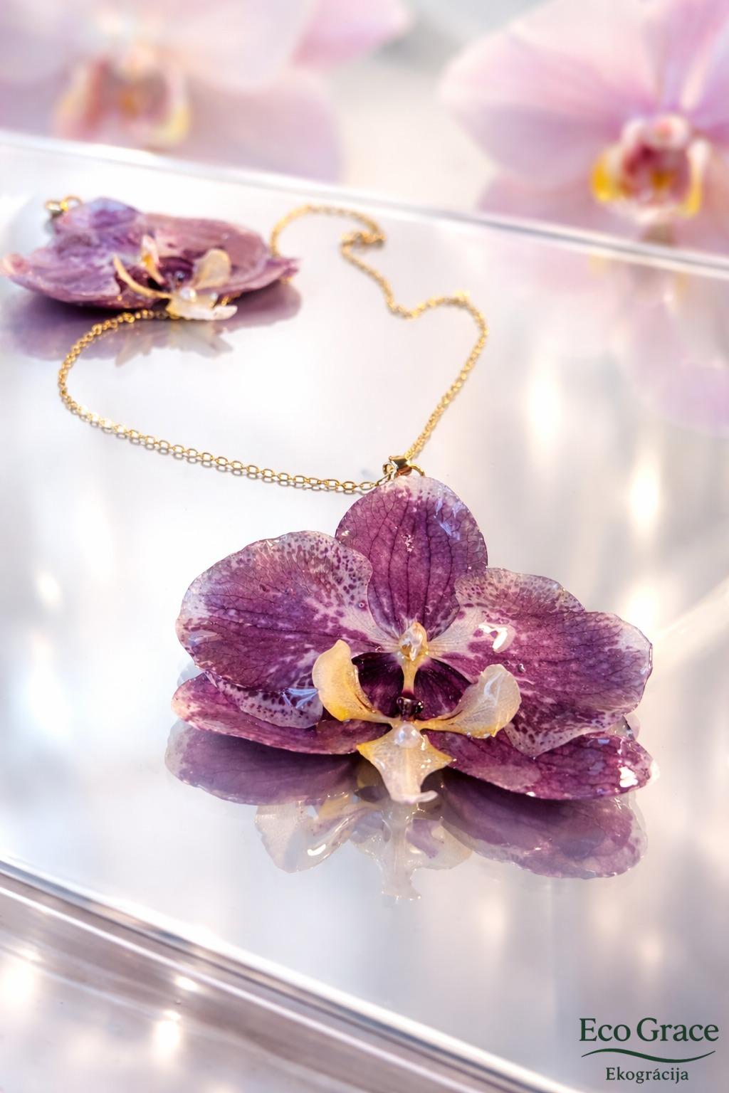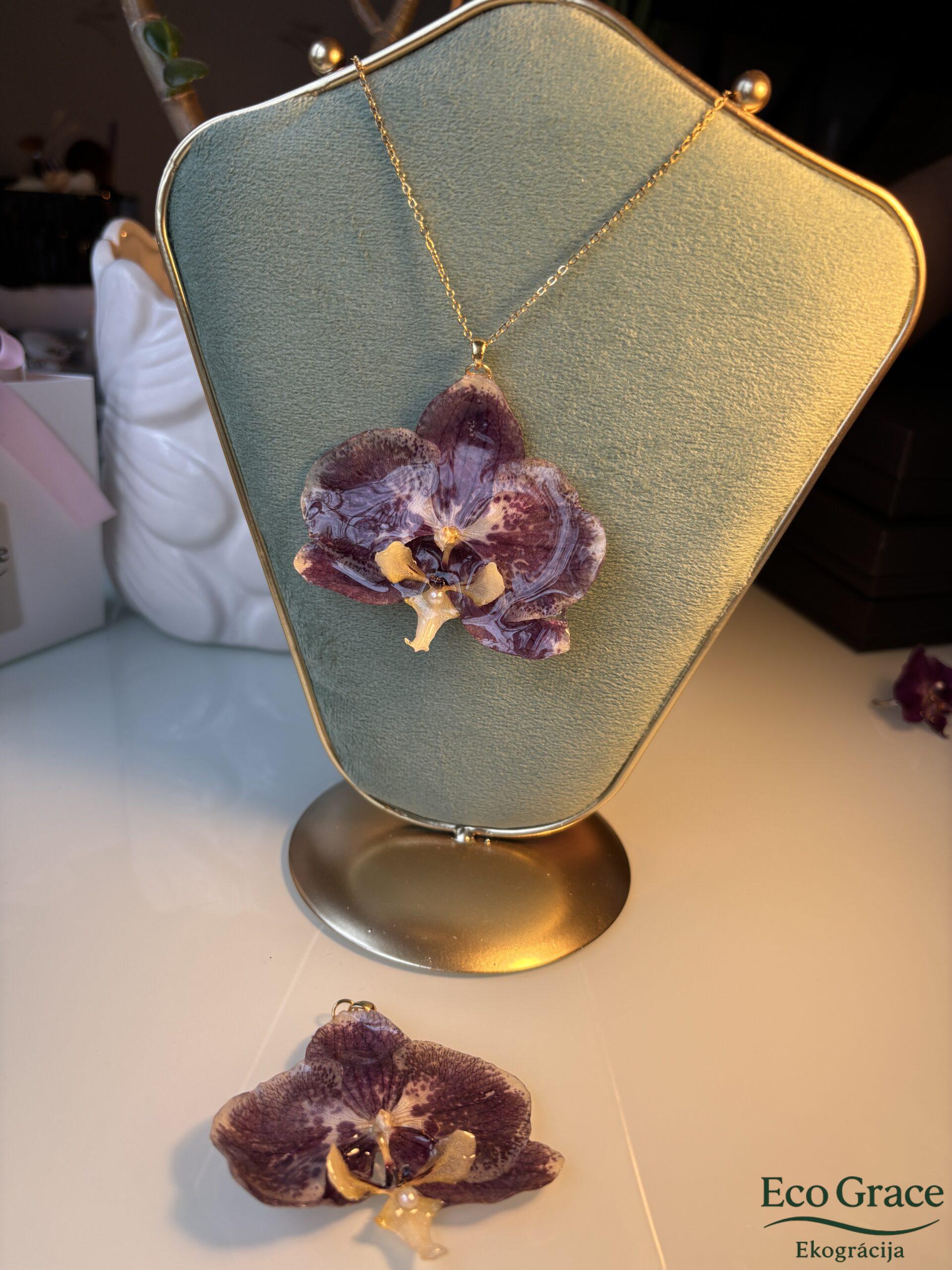 Maigs lillā orhidejas zieds, iemūžināts dzidros epoksīda sveķos, harmoniski papildināts ar smalku pērlīti, kas piešķir rotai izsmalcinātu mirdzumu. Dabīgā zieda trauslais skaistums apvienojas ar elegantu apzeltītu apdari, radot patiesi sievišķīgu un izteiksmīgu akcentu.