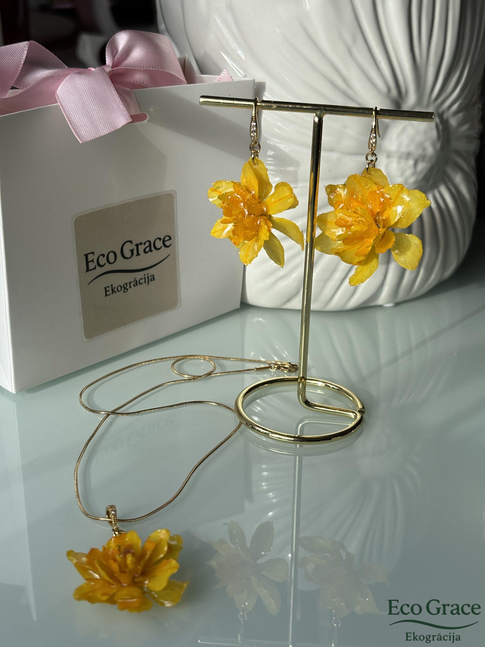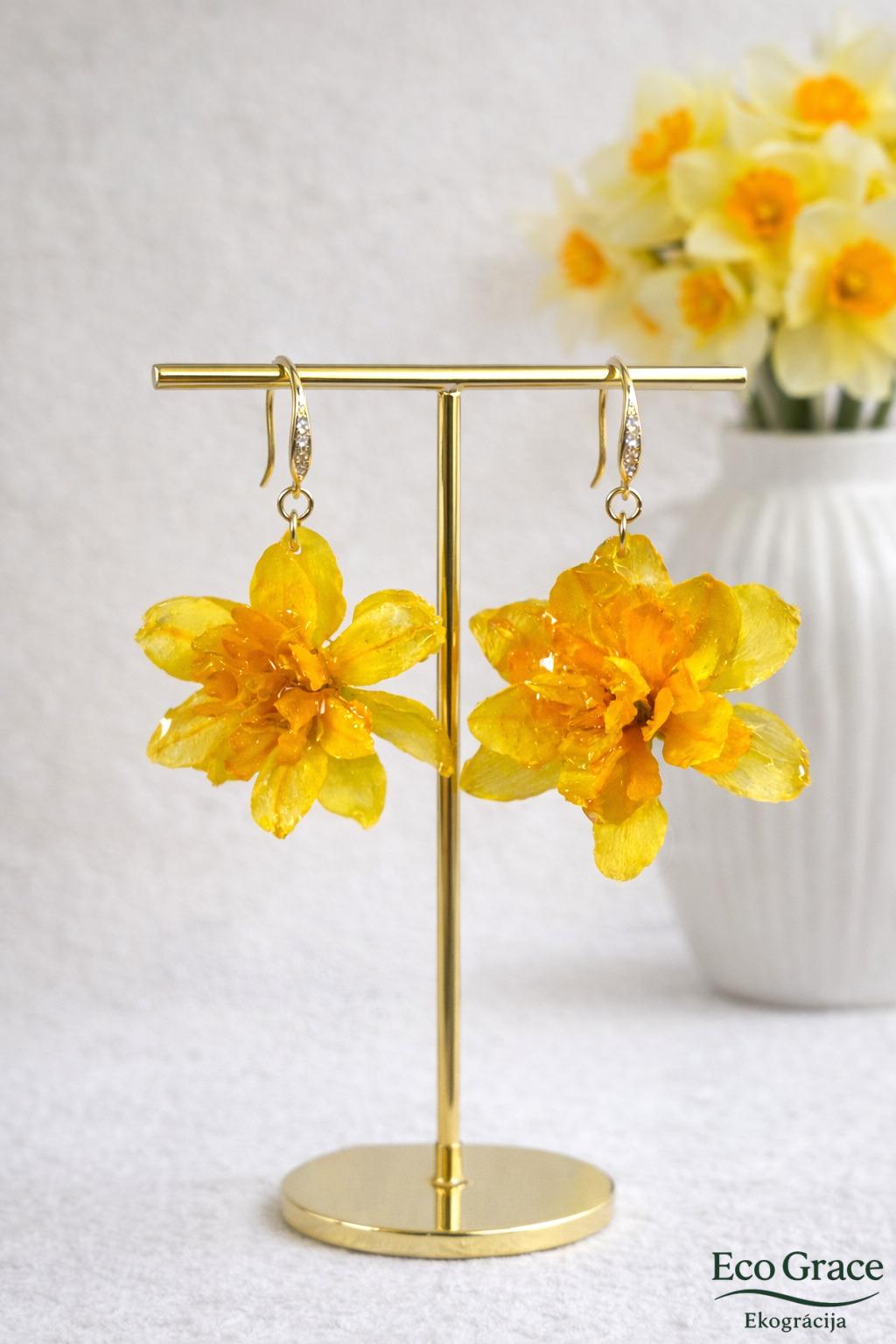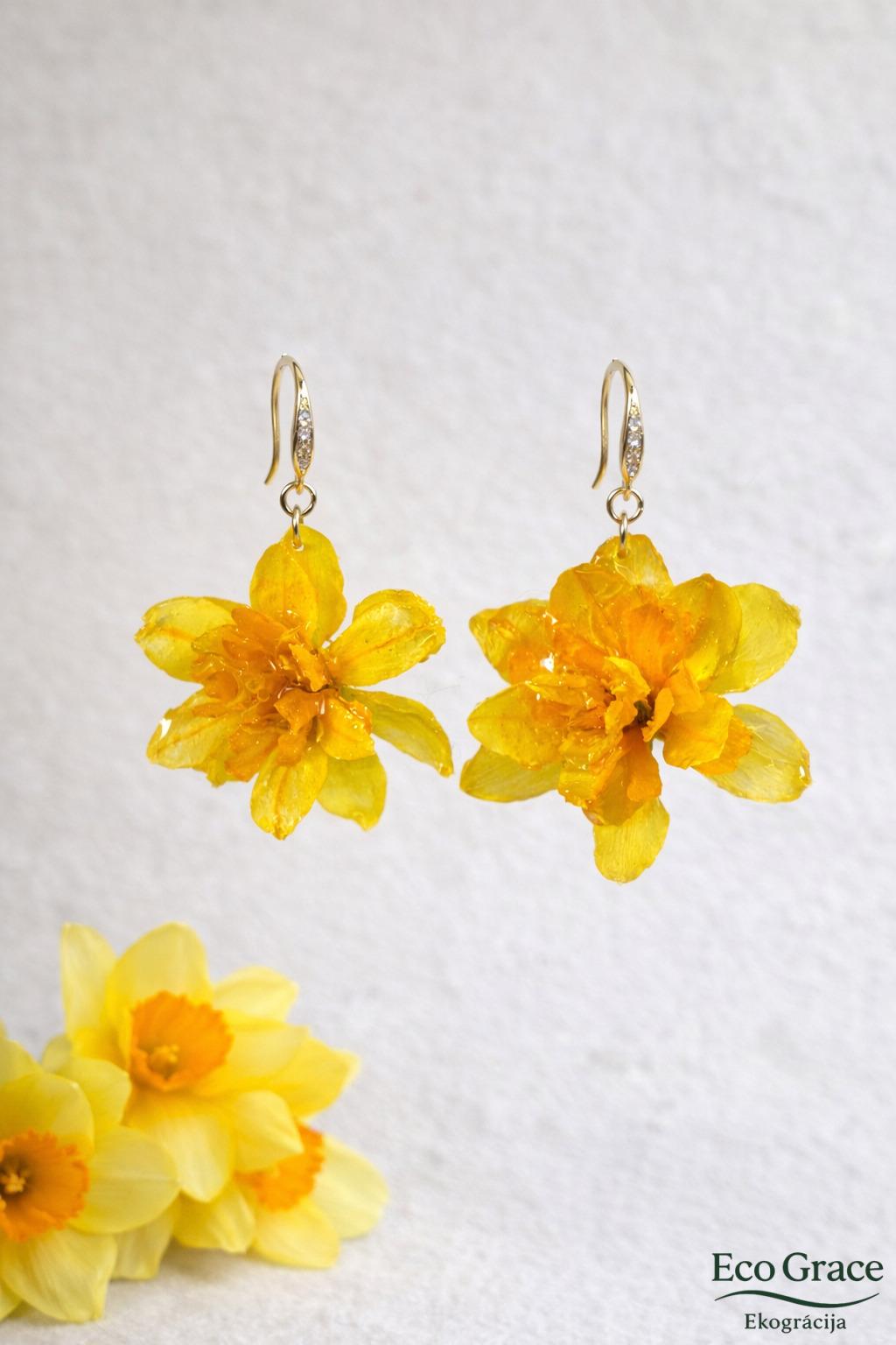 Narcišu auskari “Kuplās” – pavasara pirmie saules stari Tavās rotās. 🌼