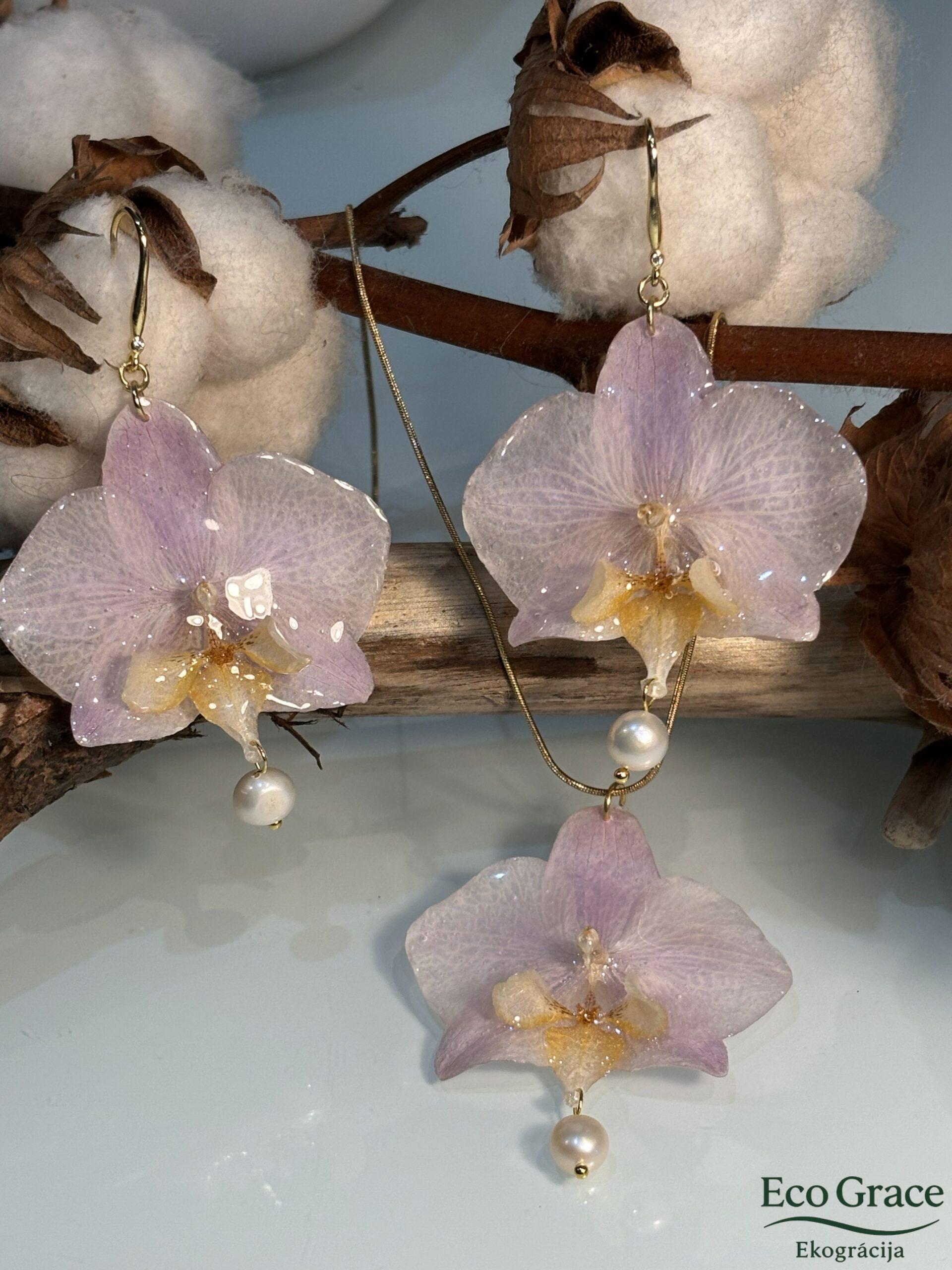 Izsmalcināts dabīgo orhideju rotu komplekts — apbur ar zieda vieglumu un pērles eleganci.