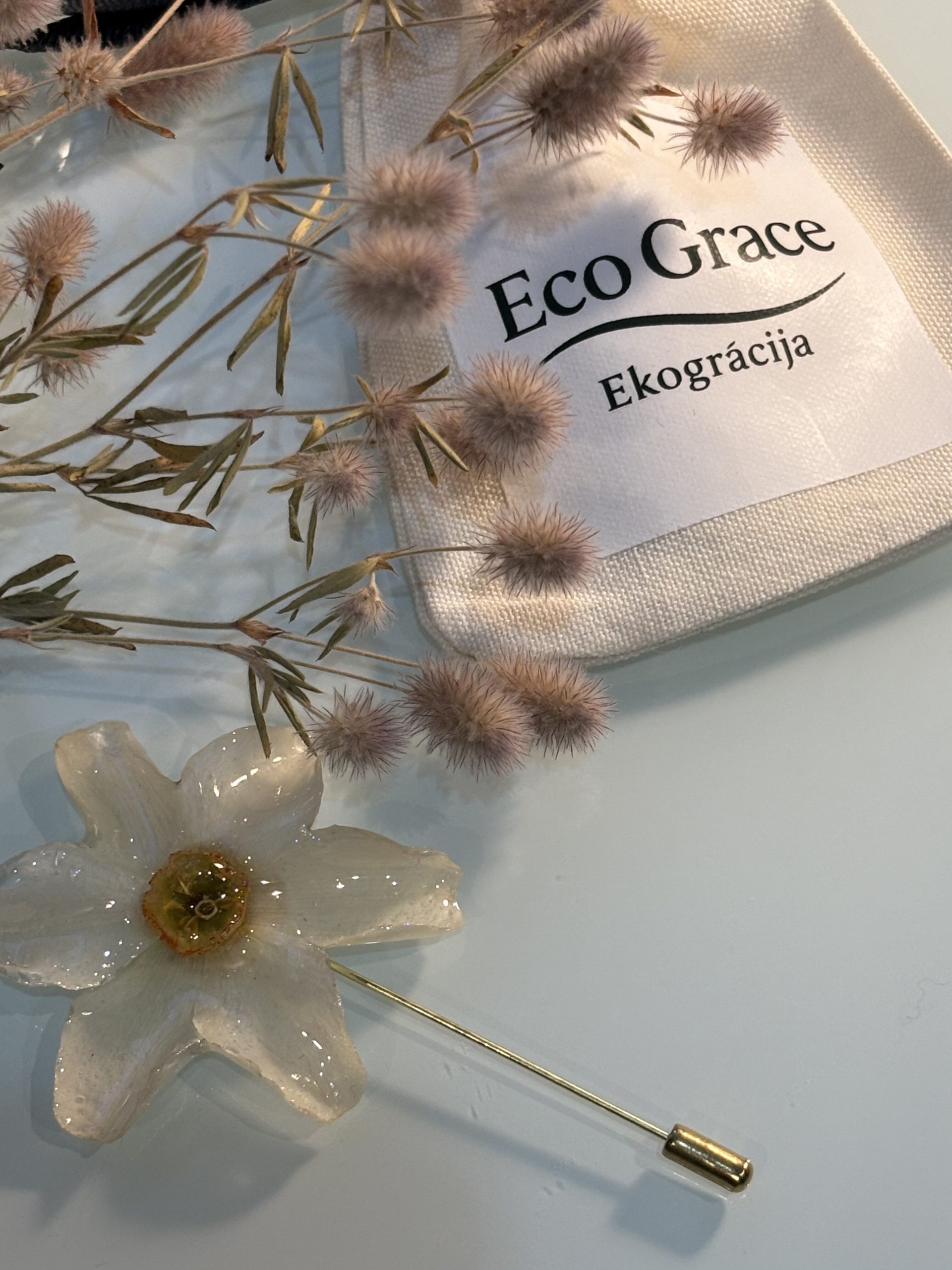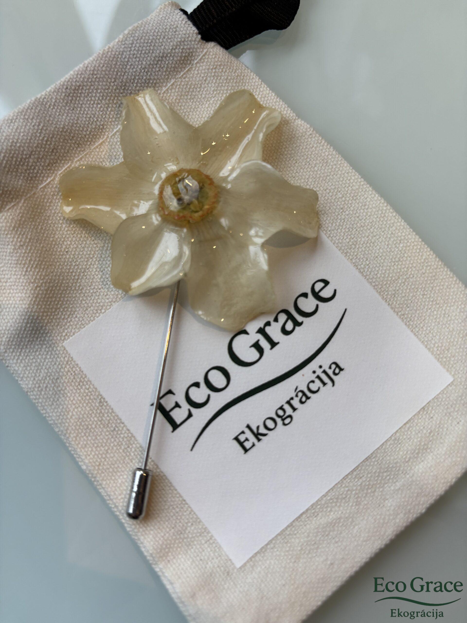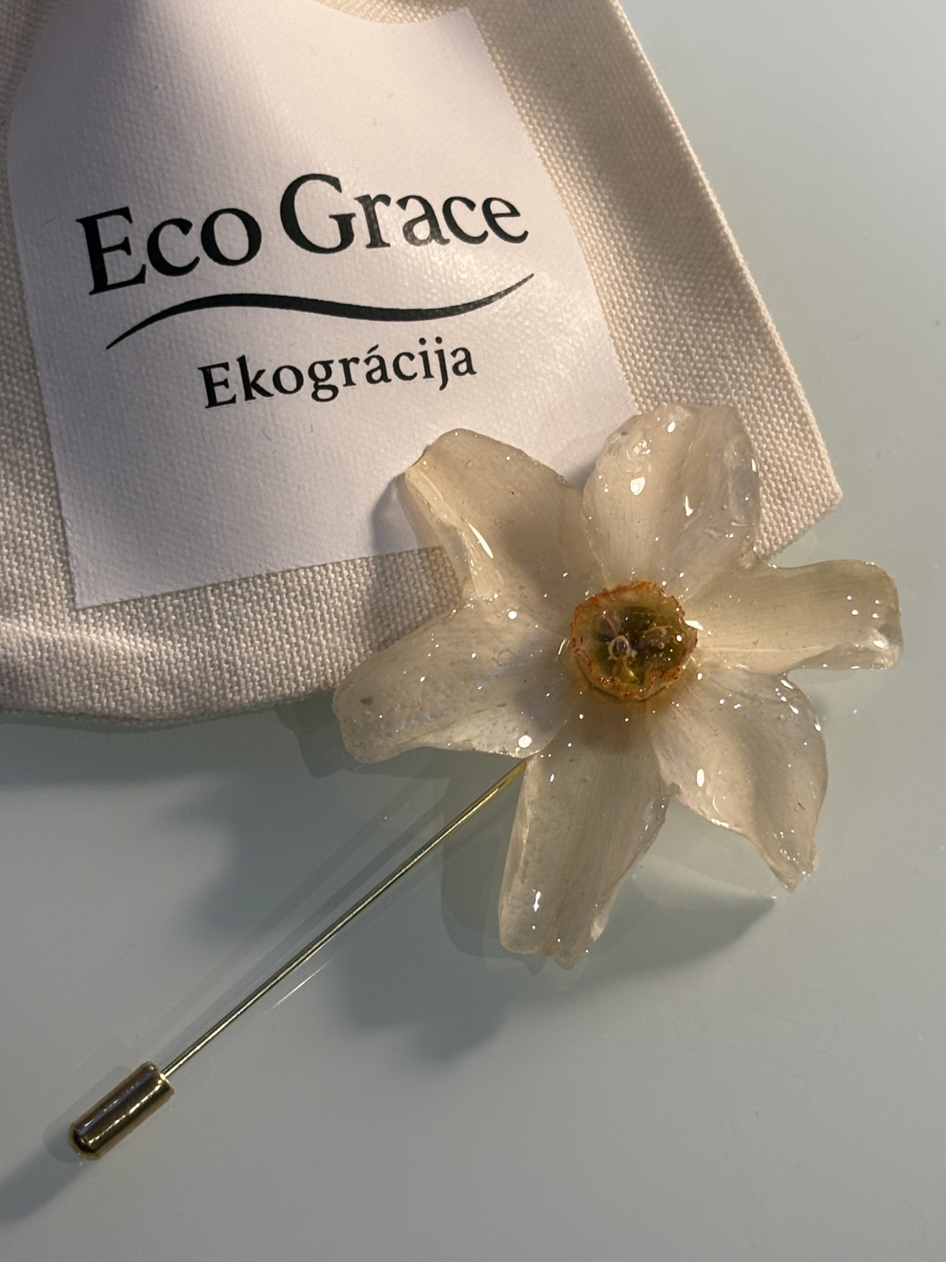 Pievieno savai žaketei izsmalcinātu akcentu! Šī rokām darinātā narcises piespraude epoksīda sveķos iemieso dabas skaistumu un eleganci.